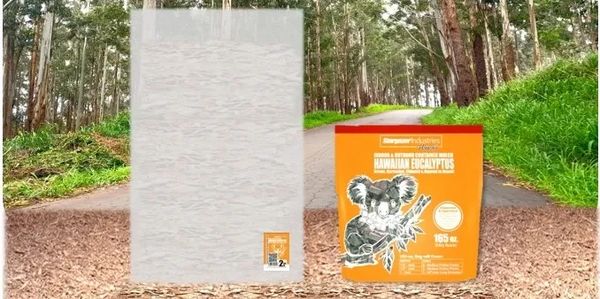 2-cu.ft. and 165-oz. bags of chipped 100% Grandis Eucalyptus Wood Chip Mulch for Landscaping and Container Plants.